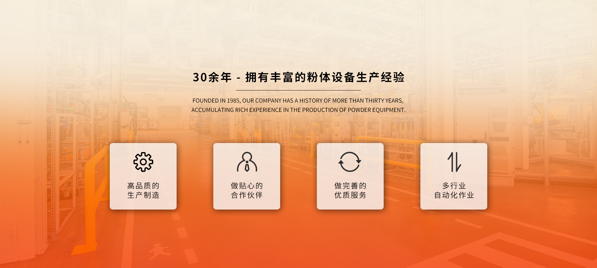公司于1985年創(chuàng)立,至今已有30余年歷史,擁有豐富的粉體設(shè)備生產(chǎn)經(jīng)驗(yàn)。